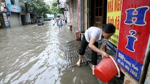 | Nước tràn vào nhiều nhà dân bên đường. |
