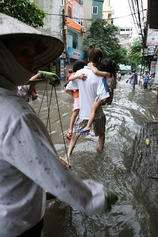 Được mệnh danh là "rốn ngập" của Thủ đô, chỉ sau mỗi trận mưa rào là ngập, đoạn cuối đường Trương Định sau trận mưa lớn đêm qua ngập khá sâu. Đến trưa nay 18/8, đoạn phố trên vẫn ngập, ngõ 785 người dân vẫn phải dùng thuyền để đi lại.