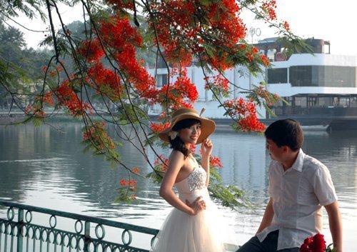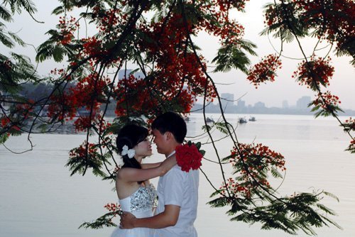 | Anh đưa em đi dưới hàng hoa phượng trước ngày cưới |