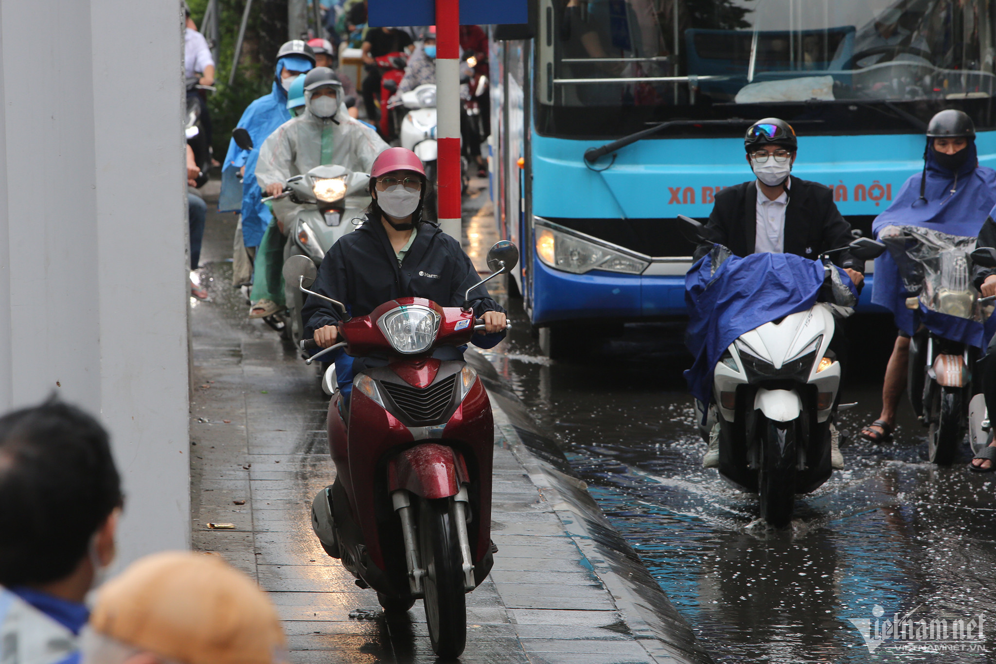 Cơn mưa lớn vào đầu giờ sáng ngày 6/6, khiến nhiều tuyến phố trung tâm Hà Nội kẹt cứng, nhiều người phải chôn chân trên đường.