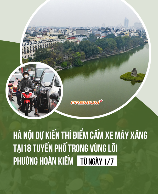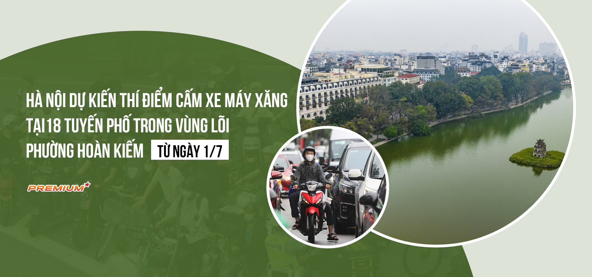 Giai đoạn 1 (từ ngày 1/7-31/12), Hà Nội dự kiến thí điểm cấm xe máy xăng tại phường Hoàn Kiếm, gồm vùng lõi rộng khoảng 0,5km², chu vi 3,5km và khu vực vùng đệm rộng 1,65km², chu vi 5,5km.