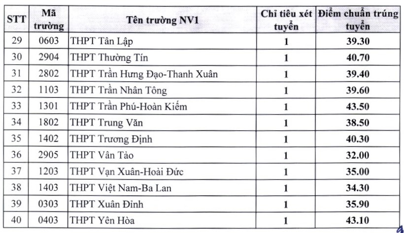 Sở GD-ĐT Hà Nội cũng duyệt chỉ tiêu và điểm chuẩn trúng tuyển bổ sung vào lớp 10 đối với thí sinh diện F0 xét tuyển năm học 2022-2023 như sau: