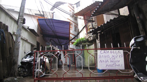 | Ngôi nhà nghiêng đã được phong tỏa để xử lý - (Ảnh: Nguyên Bình) |