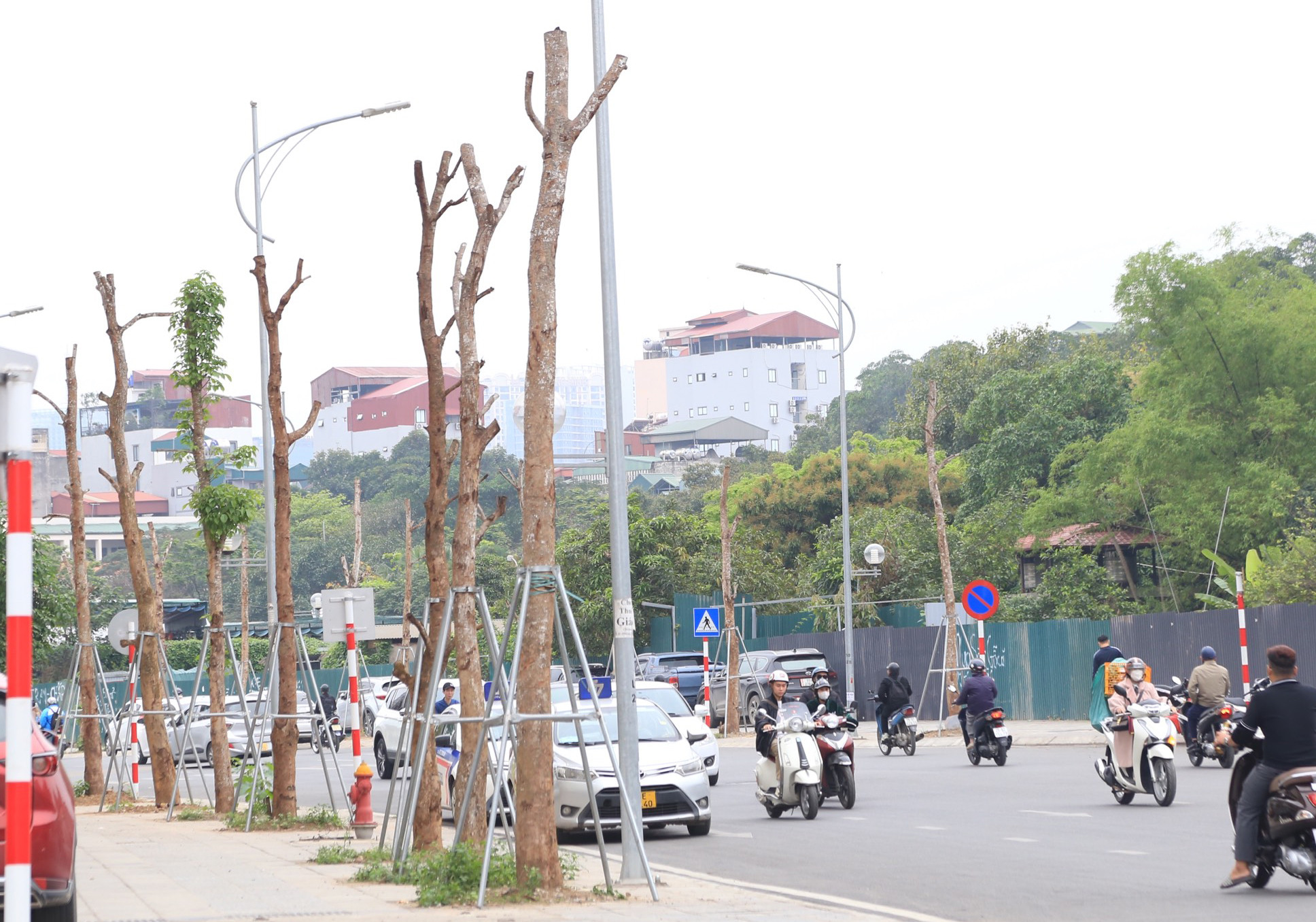Trước tình trạng trên, Ban Quản lý dự án đầu tư xây dựng quận Đống Đa đã yêu cầu nhà thầu thi công đường Huỳnh Thúc Kháng kéo dài khẩn trương thay thế các cây nghi chết.