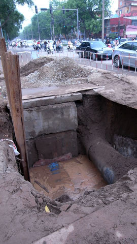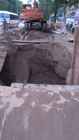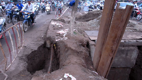 Đường ống dẫn nước này kéo dài từ bên Ngân hàng Đông Á, cắt ngang qua đường Nguyễn Trãi, sang bên cửa hàng bách hóa Thanh Xuân Bắc. Nước phun ra đã khiến cho nền đường sụt lún, tạo thành hố “tử thần”. Nhưng lần nào cũng vậy, cơ quan chức năng xử lý rất chậm, nhiều lần cả tháng không xong, đường Nguyễn Trãi đã quá tải, nay tắc càng thêm tắc”.