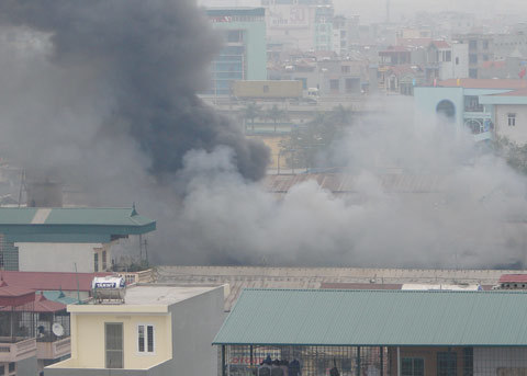 Vụ hỏa hoạn xảy ra vào lúc 14h chiều 17/1, ngọn lửa từ nhà xưởng lan nhanh, khói bốc lên nghi ngút. Sau gần 2h đồng hồ mới được khống chế hoàn toàn.