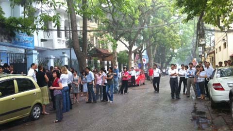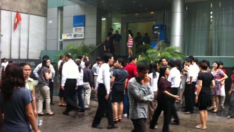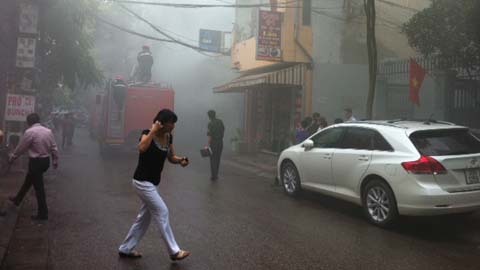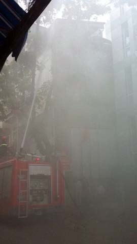 Nhiều nhân viên đang làm việc trong văn phòng khi phát hiện ra cột khói bốc cao đã chạy xuống đường Khói mù mịt, xe cứu hỏa đã có mặt tại hiện trường Hàng trăm nhân viên văn phòng làm việc trong tòa nhà xuống đường đứng nhìn ![]() Nước được phun lên các tầng của ngôi nhà, điều lạ lùng là điện trong các phòng làm việc chưa được cắt, đèn vẫn sáng 'Đám cháy' được khoanh vùng và dập tắt sau khoảng 10 phút |