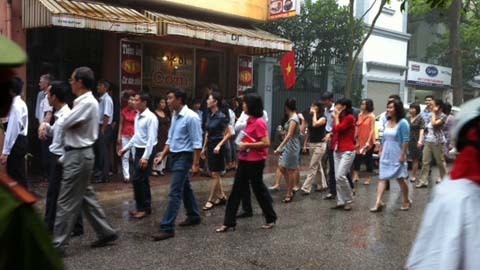 | Sau khi xe cứu hỏa rời khỏi hiện trường, nhiều nhân viên làm việc trong tòa nhà mới biết đây là cuộc diễn tập PCCC mà Ban quản lý tòa nhà muốn các nhân viên văn phòng làm quen và rút kinh nghiệm khi có cháy thật xảy ra. |