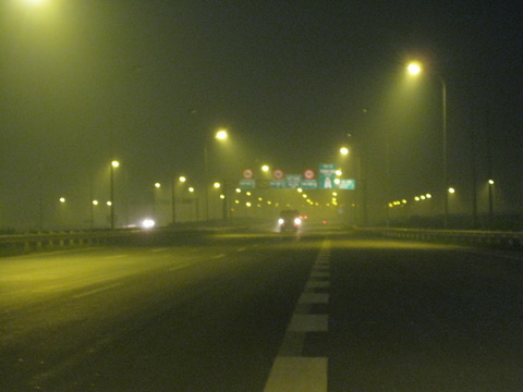 | Biển báo phát quang cũng trở nên mờ ảo |