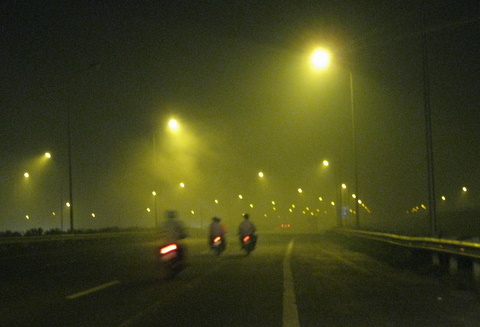 Một số phương tiện xe máy đã không thể lưu thông được phía dưới đường nhỏ, vì ở cạnh vệ đường, người dân đốt rơm quá nhiều. Không thể nhìn thấy đường để đi nên họ đã chấp nhận việc vi phạm an toàn giao thông, đi lên làn đường dành cho ô tô cho đỡ khói.