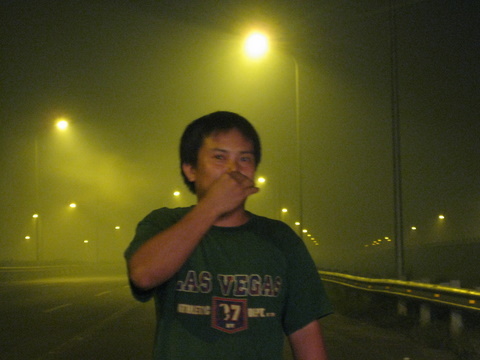 Anh Vũ Nam điều khiển chiếc xe Escape phải dừng lại ở giữa đường vì quá ngỡ ngàng khi lưu thông từ Xuân Mai vẫn thấy bình thường, nhưng càng về gần Hà Nội lại càng thấy nhiều khói.