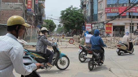 Chị Lý phải loay hoay mãi mất gần 1 giờ đồng hồ mới quay đầu xe được vì cũng như chị, nhiều người không biết đường bị ngăn nên cứ lao thẳng xe vào đường Thái Thịnh, gây nên cảnh ùn tắc.