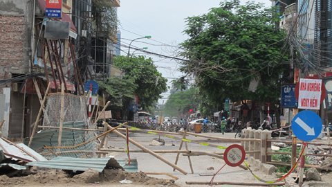 ngã tư phố Thái Thịnh cho thấy, toàn bộ đoạn đường trước số nhà 132 đã được các