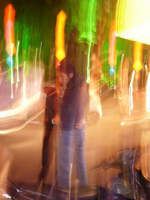 | Một đôi bạn trẻ đang yêu chụp ảnh kỷ niệm dưới sáng màu. |