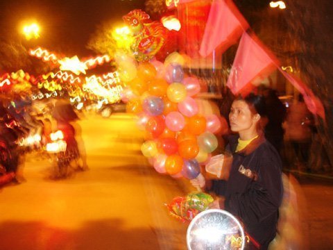 | Người bán bóng nhẫn nại chịu cái lạnh đêm Giao thừa chờ bán bóng cho