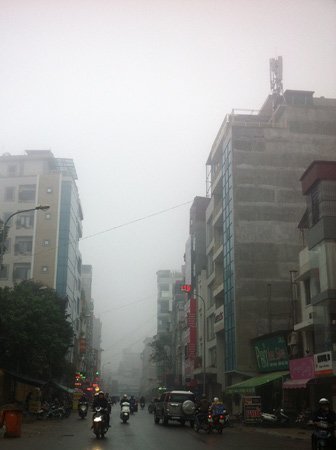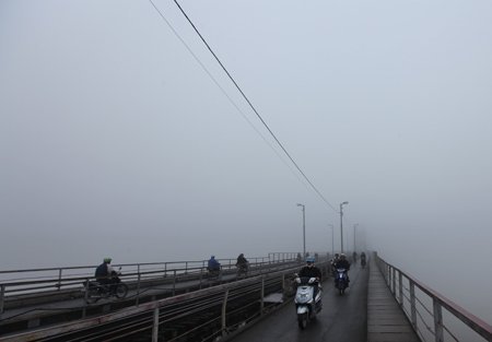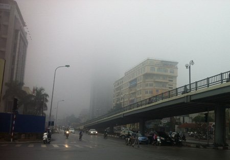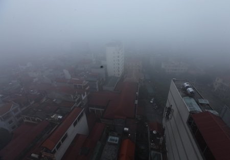 Sáng nay sương mù phủ kín bầu trời Hà Nội.
