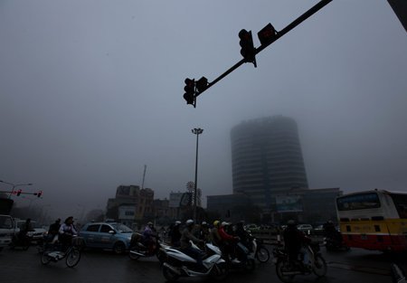 Sương mù mịt khiến giao thông khó khăn.
