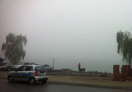 Hồ Tây mù mịt sương.