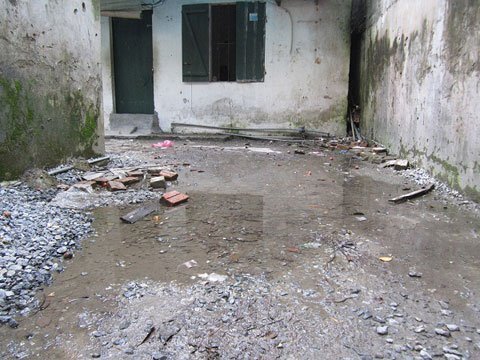 Đường vào xóm trọ, nước còn đọng lênh láng