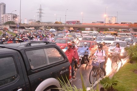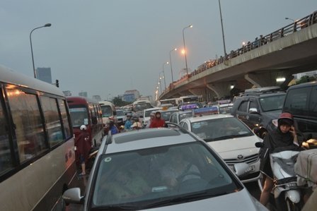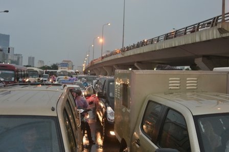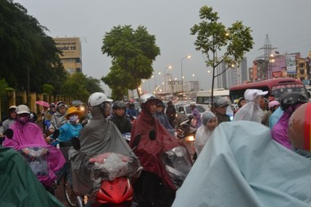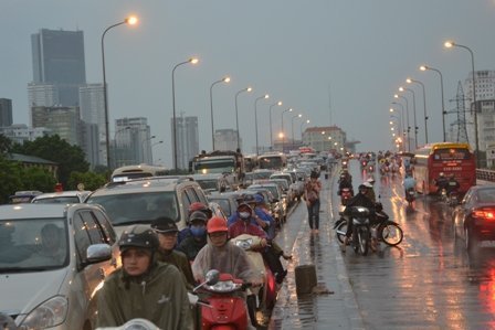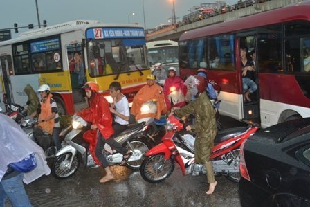 Theo ghi nhận của PV, do cơn mưa lớn đúng vào giờ tan tầm nên đã gây nên tình trạng ùn ứ, kẹt cứng cục bộ kéo dài ở nhiều tuyến phố trên địa bàn Hà Nội như Nguyễn Trãi, Phạm Hùng, Phạm Văn Đồng, Xuân Thủy, đường Láng, Nguyễn Chí Thanh… Hầu hết các phương tiện không thể lưu thông được vì mật đô giao thông quá cao.