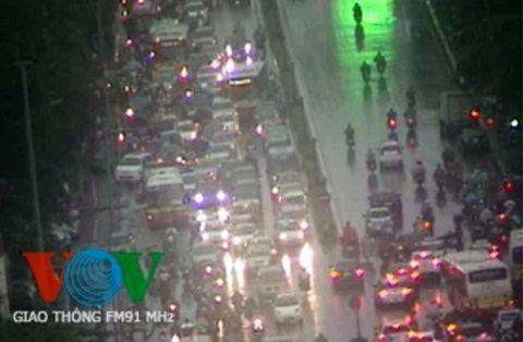 Cơn mưa xảy ra vào thời điểm trước giờ tan sở và tình trạng ngập úng diễn ra nghiêm trọng nhất vào giờ tan sở nên giao thông đã bị tắc nghẽn. Chị Ngọc, trú tại phường Bách Khoa cho biết đường về nhà của chị bị gián đoạn liên tục do lượng phương tiện ùn ứ quá nhiều. Tuyến phố Lý Thường Kiệt – Phan Bội Châu – nơi chị đi qua cũng ngập gần hết bánh xe.