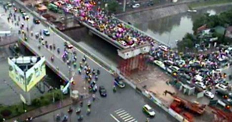 Cầu Trung Hòa (Cầu Giấy) ùn tắc nghiêm trọng (Ảnh: VOV Giao thông)