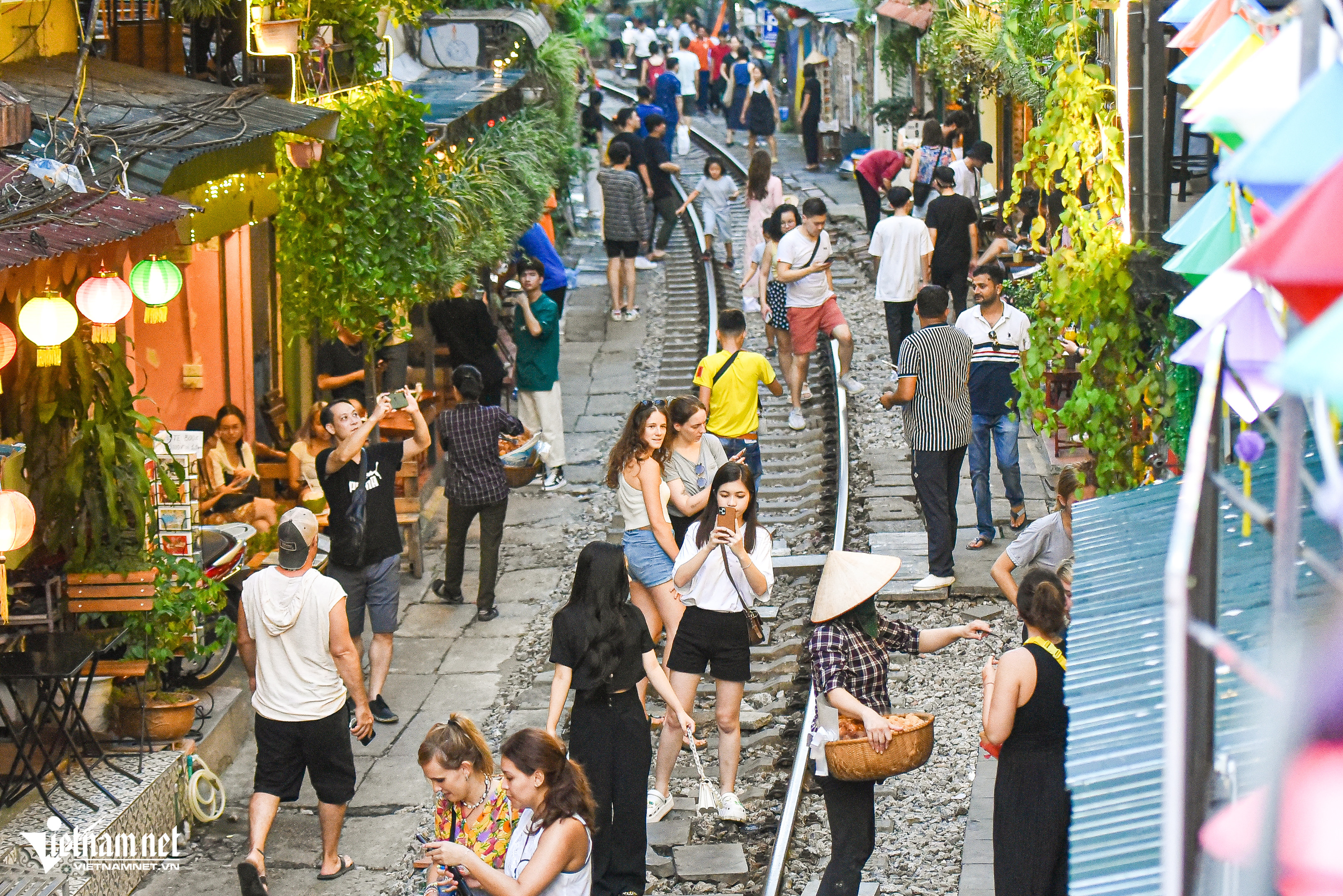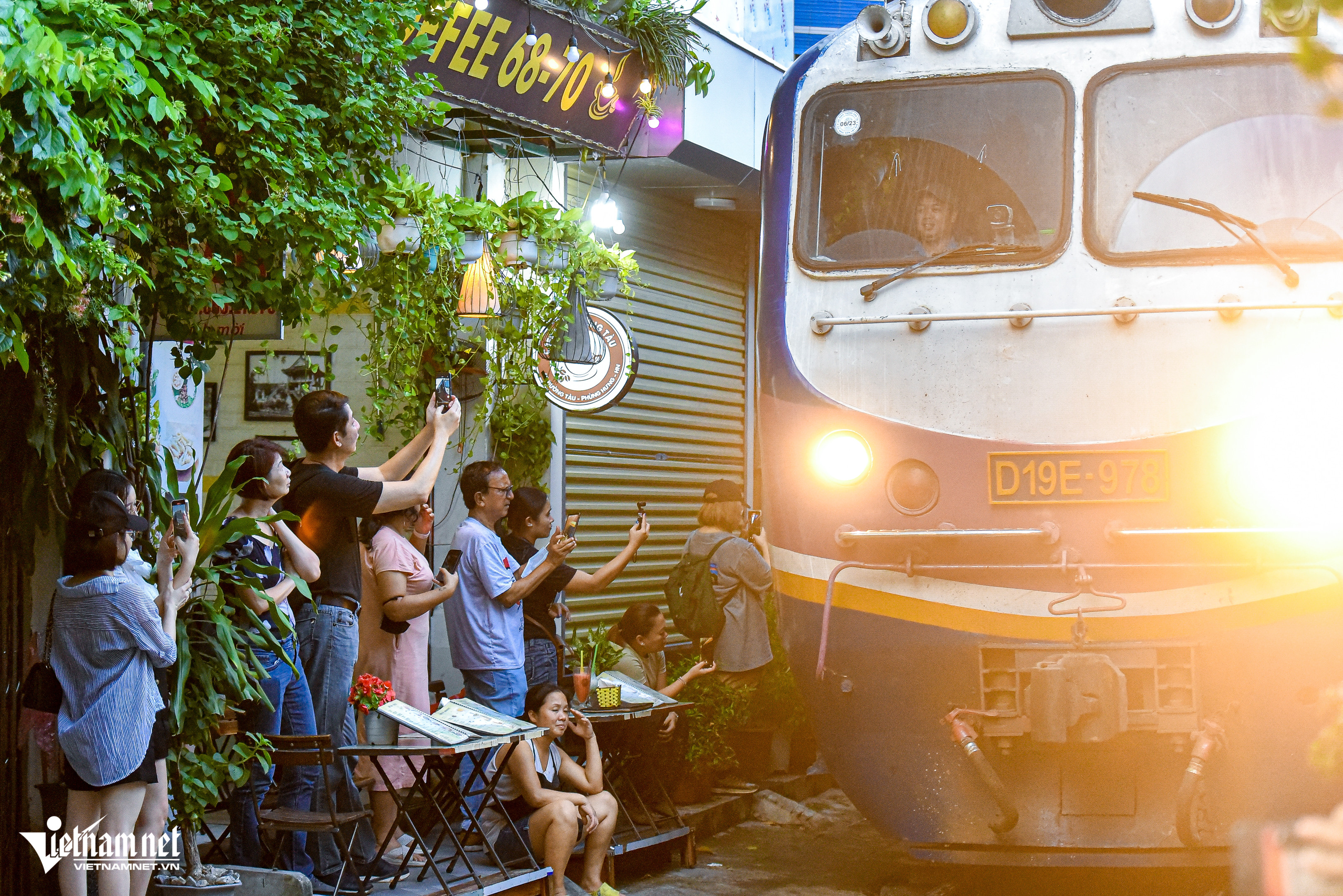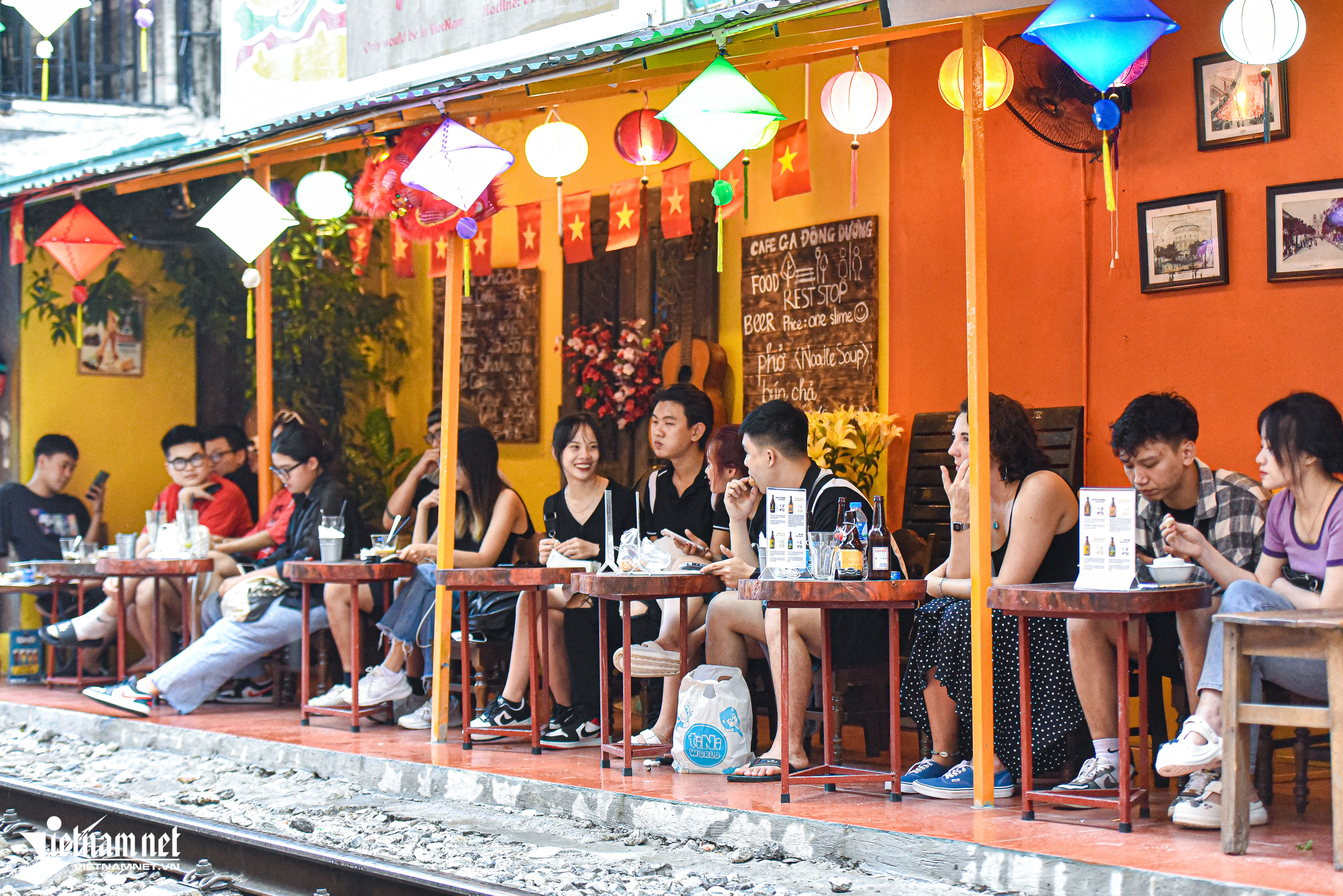 Từ 16h30 chiều 1/9, hàng trăm du khách đổ về phố đường tàu (quận Hoàn Kiếm, Hà Nội) để uống cà phê, trải nghiệm cuộc sống ven đường tàu và chờ đợi khoảnh khắc tàu chạy qua phốCác quán cà phê ven đường tàu chật kín du khách. Đây là địa điểm vừa có thể nhâm nhi cà phê vừa ngắm trọn khoảnh khắc tàu chạy quaRất đông du khách quốc tế tới từ Hàn Quốc, Nhật Bản và các quốc gia châu Âu cảm thấy phấn khích khi chứng kiến đoàn tàu chạy qua con phố