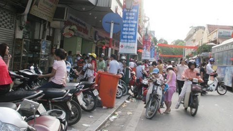 | Trước cửa hiệu kem Tràng Tiền: Mặc dù có thùng rác rất to nhưng giấy gói, que kem vẫn được vô tư vứt đầy đường. Ảnh: Tiền phong |