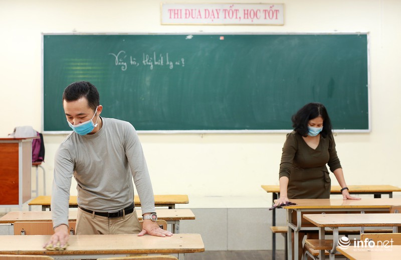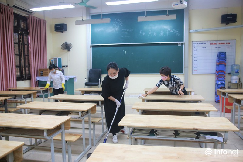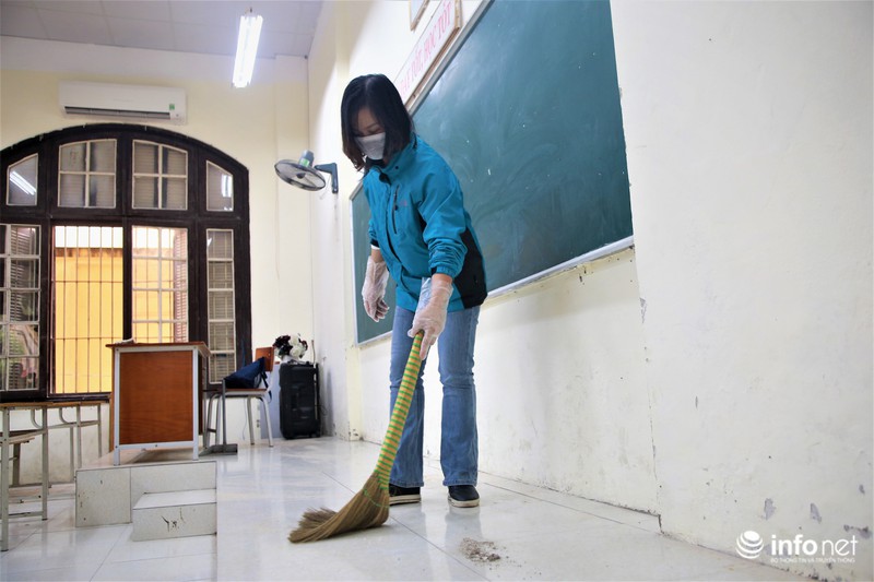 Ngày 28/2, nhiều trường học trên địa bàn Hà Nội đã tiến hành các công đoạn dọn dẹp, khử khuẩn các phòng học, đảm bảo vệ sinh phòng chống dịch Covid-19.