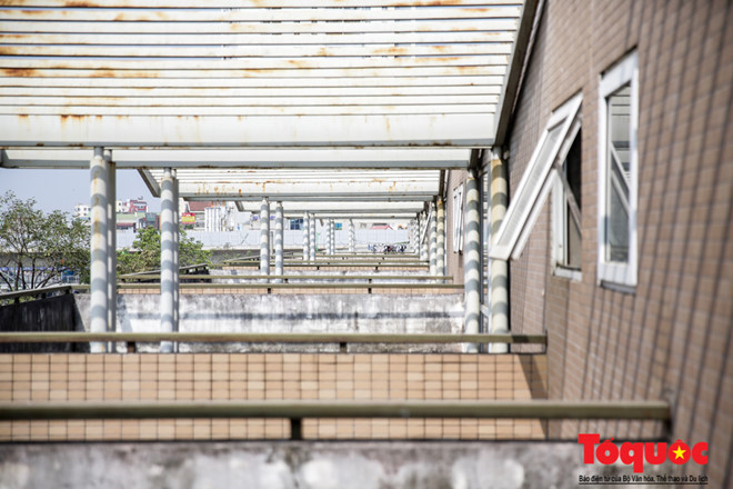 Khung cảnh hoang hóa phía sau tòa nhà. |