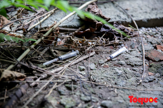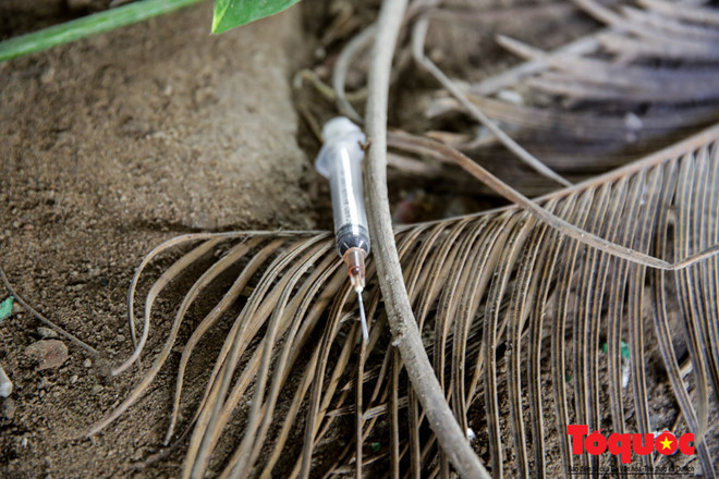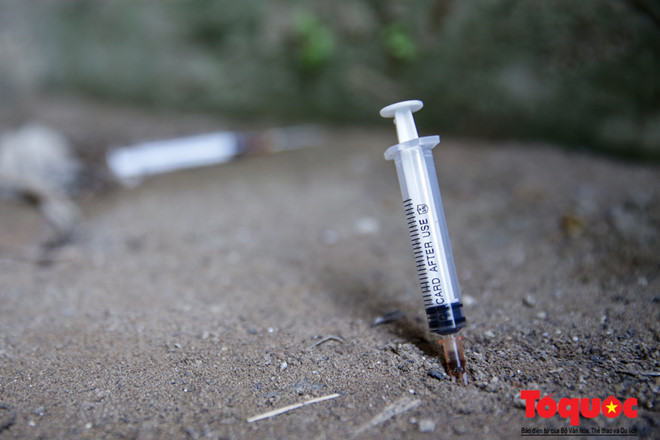 Ngay phía bên ngoài các bơm kim tiêm đã lấp ló sau bụi cỏ trông rất nguy hiểm cho người đi qua.