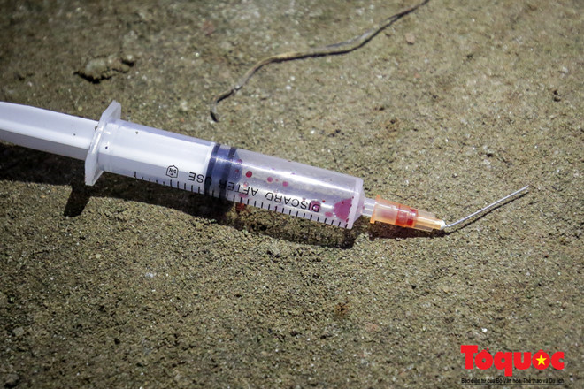Thậm chí nhiều bơm kim tiêm vừa mới sử dụng vẫn còn đang rỉ máu tươi.