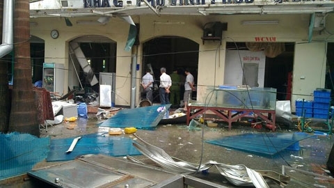 Cánh cửa kéo bằng kim loại của quán bia bị sức ép của tiếng nổ hất tung bay một quãng vài chục mét; mái che kim loại bị uốn cong méo mó; nhiều bàn ghế kim loại trong nhà bị đẩy văng ra ngoài sân…