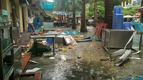 Bàng hoàng, chị chạy ra bên ngoài đường kiểm tra thì thấy toàn bộ đồ đạc, cửa tôn, bàn kim loại… của quán bia Hải Xồm tan hoang.