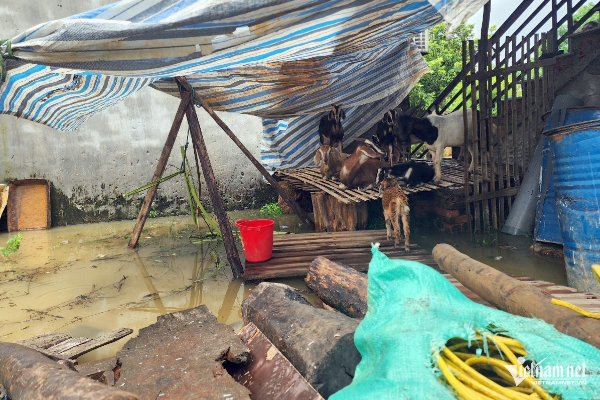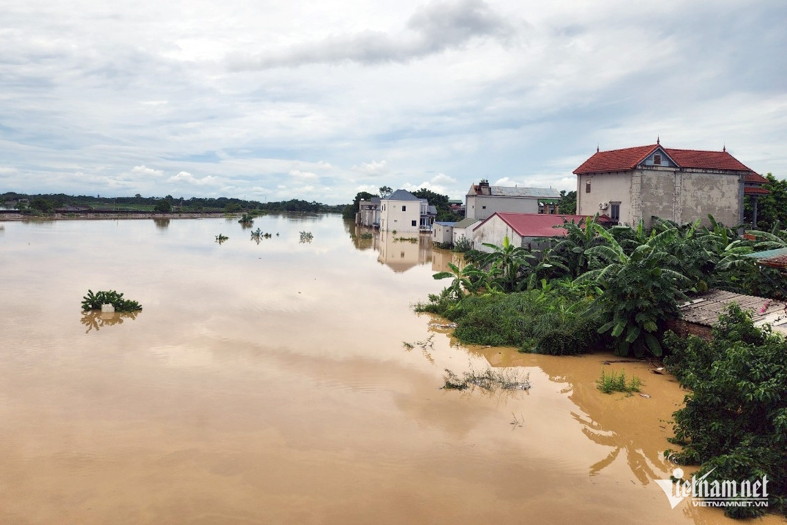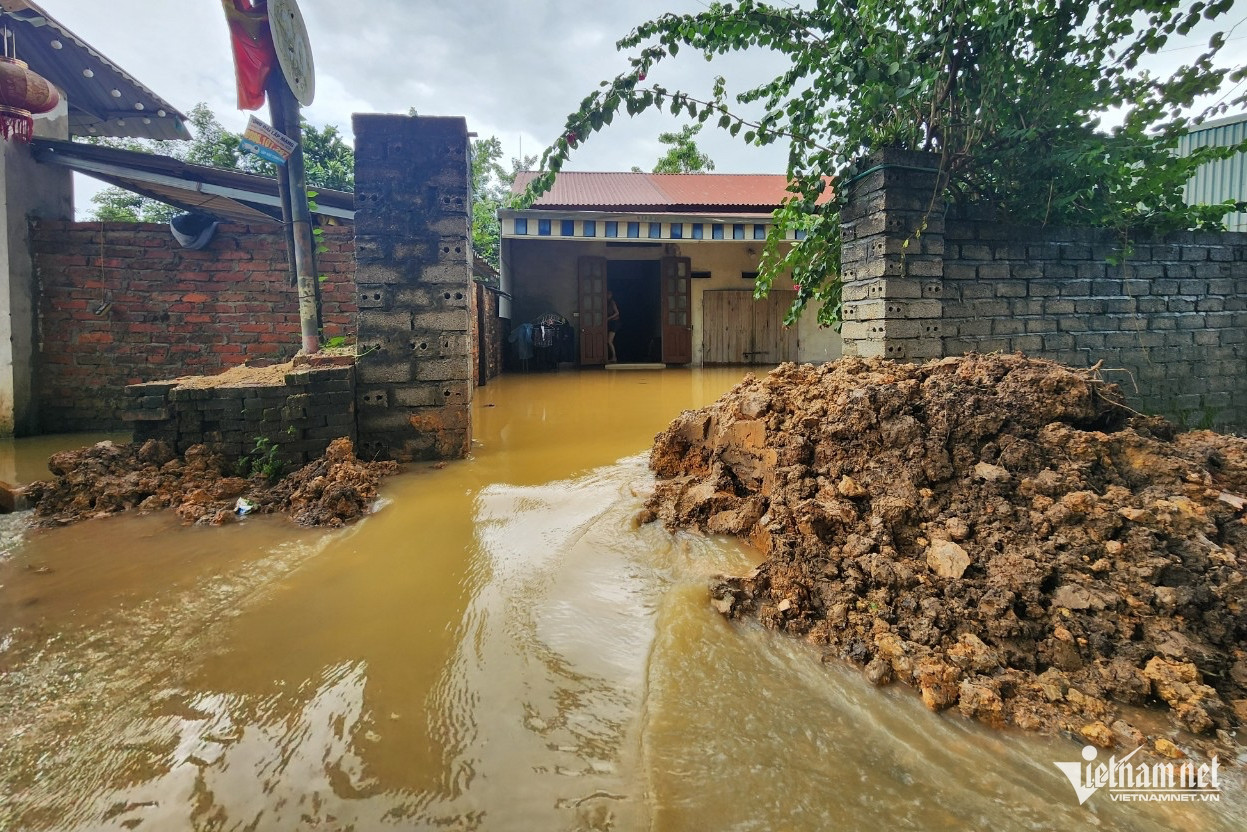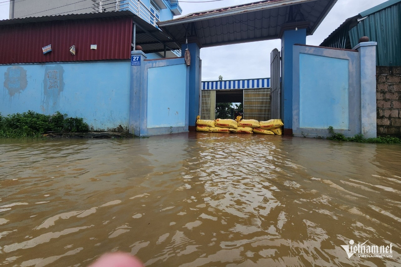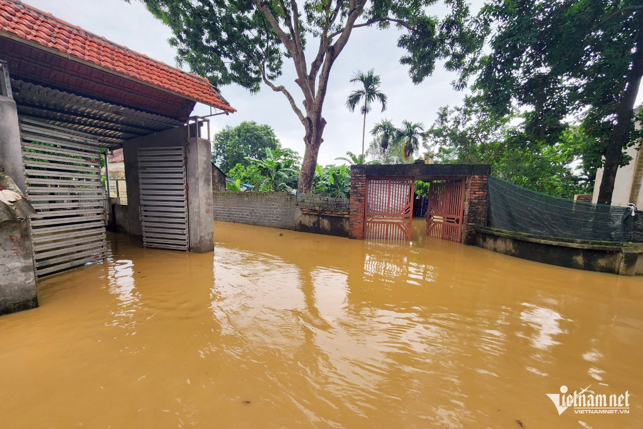Mưa lớn kéo dài 2 ngày qua, không chỉ trong nội thành, nhiều làng xã ở Hà Nội cũng bị ngập lụt. Từ chiều 23/7, nước sông Bùi (huyện Chương Mỹ) bắt đầu dâng cao, tràn qua một số đoạn đê khiến nhiều nhà dân bị ngập lụt.