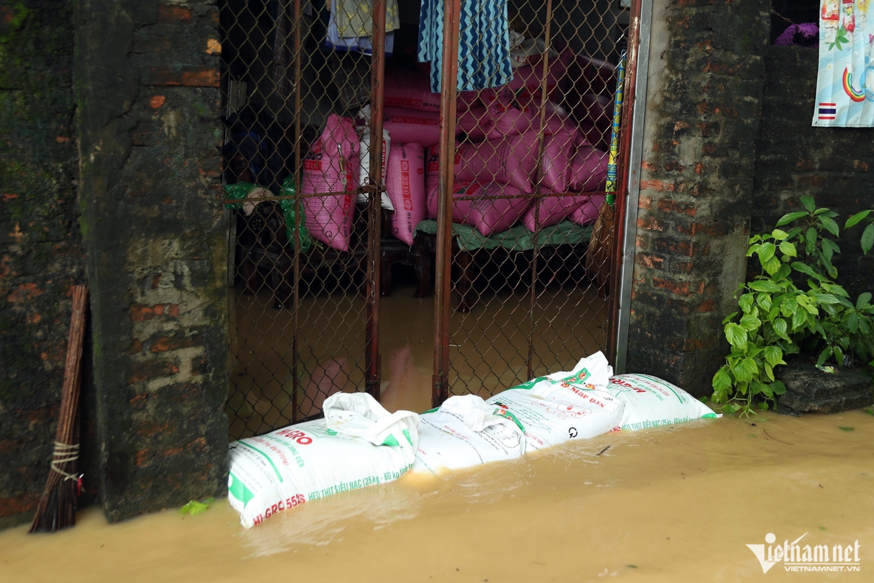 Dù tìm mọi phương án 'be bờ, đắp đập' nhưng người dân ở ven sông Bùi không ngăn được nước lũ tràn vào nhà.