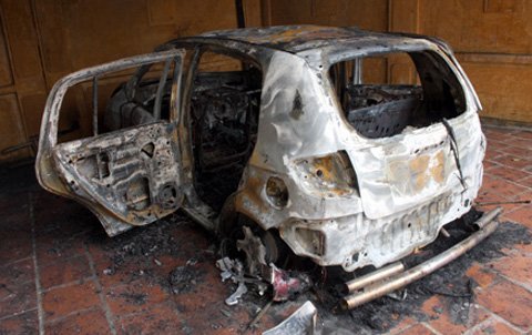 Hậu quả của vụ nổ, cháy xe (Ảnh: VnMedia) |