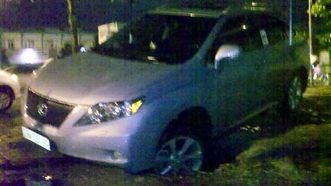 Hố ga khá sâu song bánh xe chỉ lọt xuống một nửa do có gầm xe giữ lại; phần ba-đờ-xốc dưới bẹp dúm. Ở thế tiến không được, lùi chẳng xong, loay hoay một hồi lái xe đành cầu cứu đơn vị cứu hộ giao thông.