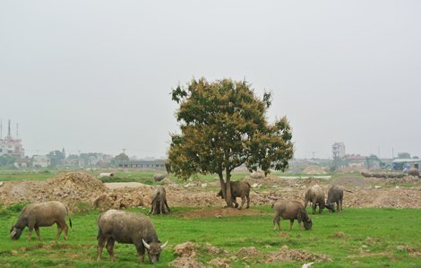 Tại khu đô thị Dương Nội bên đường Lê Văn Lương kéo dài (Hà Đông, Hà Nội) còn khá nhiều khu đất trống nằm trong quy hoạch dự án đô thị nhưng chưa được xây dựng. Đi qua khu đô thị còn dở dang này, người ta không khỏi ngỡ ngàng khi bắt gặp cảnh nhiều đàn trâu bẽo mẫm, nhởn nhan gặm cỏ không khác gì quang cảnh ở các vùng nông thôn.