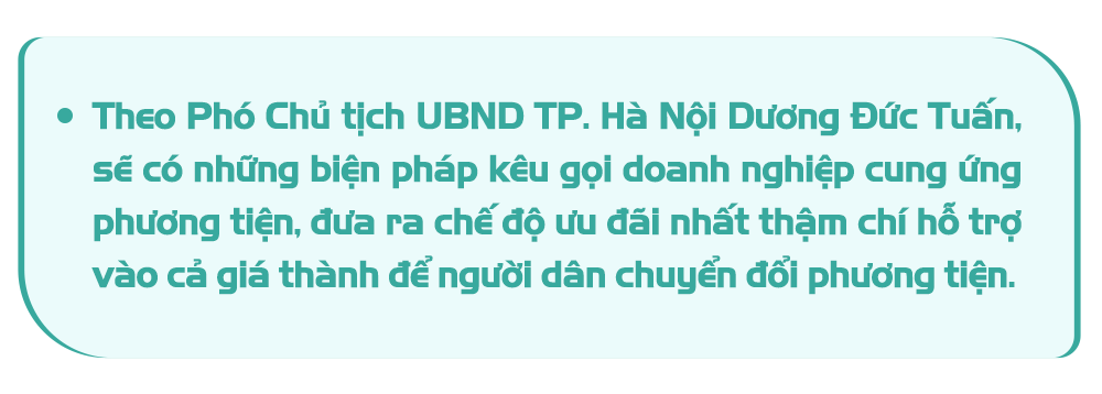 Đề cập đến phương tiện giao thông cá nhân sử dụng xăng dầu, ông Dương Đức Tuấn - Phó Chủ tịch UBND TP Hà Nội nhấn mạnh: “Vấn đề này phải bảo đảm hài hòa giữa người dân, doanh nghiệp và nhà nước để vừa chuyển hóa phù hợp, vừa đảm báo tính khả thi trong triển khai”.