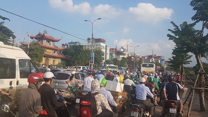 | Khu vực chùa Tứ Kỳ, đường Giải Phóng, việc di chuyển rất khó khăn. Ảnh: P.Hải |