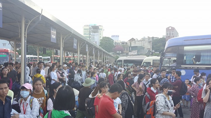 | Bến xe Mỹ Đình cũng rất đông đúc. Ảnh: Đoàn Bổng |