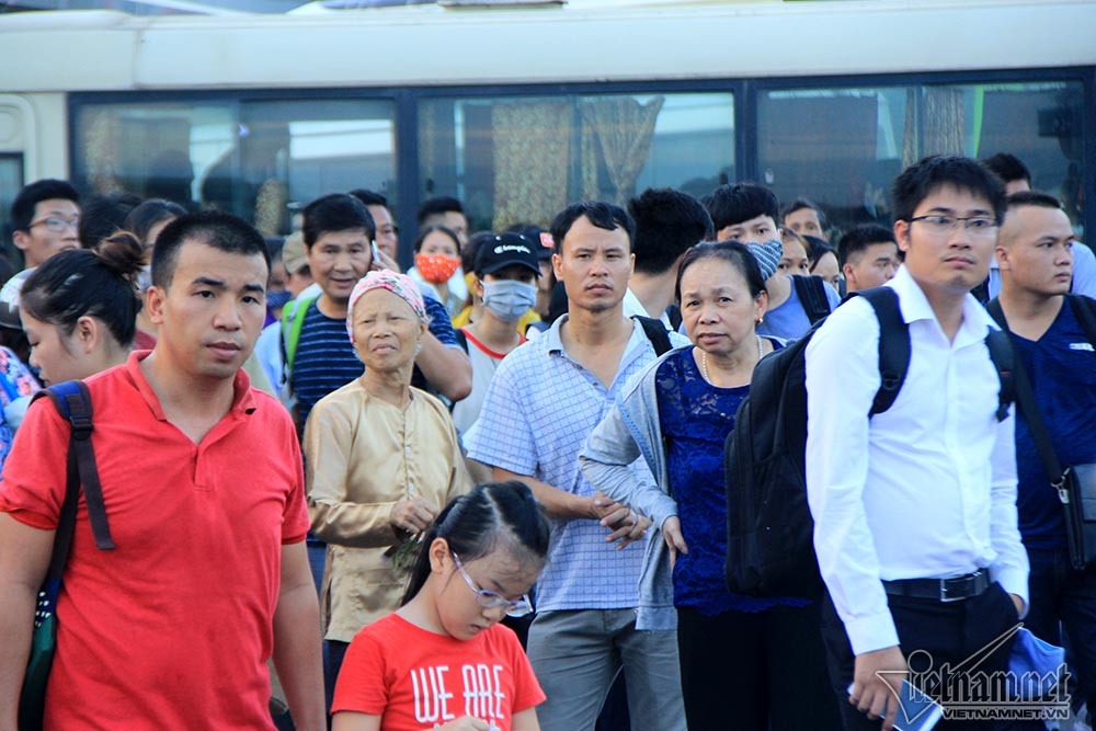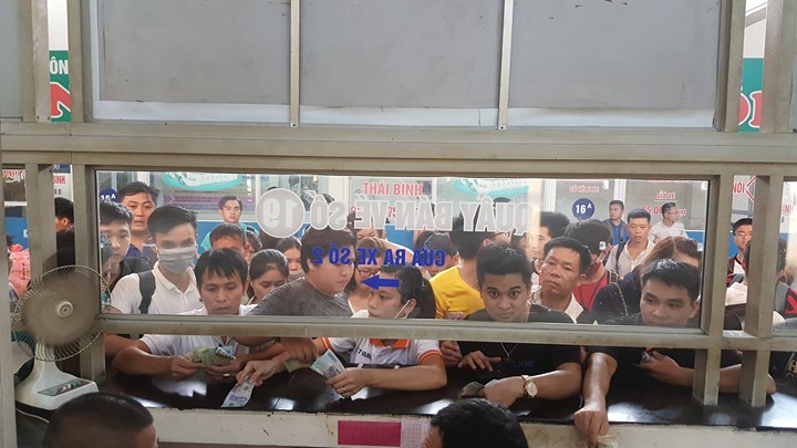 | Ô tô khách cũng đông nghẹt người. Ảnh: P.Hải |