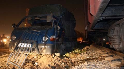Cùng lúc tàu đâm xe máy, chiếc xe tải mang BKS 29Y – 4388 lưu thông hướng Xuân Mai – Hà Đông cũng bị toa tàu quệt ngang phía đầu xe khiến chiếc xe bị văng khỏi đường khoảng 5m.