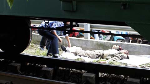 Tại hiện trường, xác người đàn ông xấu số nằm trong lòng đường sắt, toàn bộ phần thi thể còn nguyên vẹn, trừ phần đầu bị bánh xe cán nát.