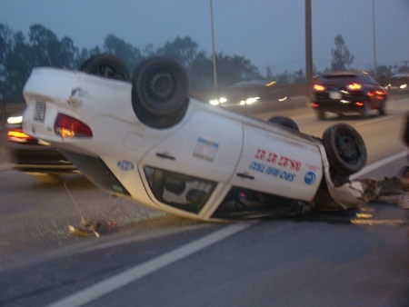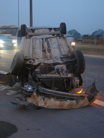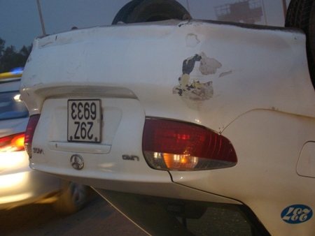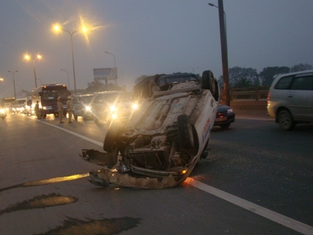 Một số người chứng kiến vụ tai nạn trên cho biết, tai nạn xảy ra là do lái xe taxi muốn vượt một chiếc xe khách đang lưu thông cùng chiều, đã lao vào dải phân cách giữa đường. Hậu quả chiếc xe mất cân bằng bay lên và lật ngửa như vậy. Rất may vụ tai nạn không gây chết người, lái xe taxi chỉ bị xây xát nhẹ, nhưng cú “taxi bay” đã làm nhiều người tham gia giao thông được một phen hú vía.