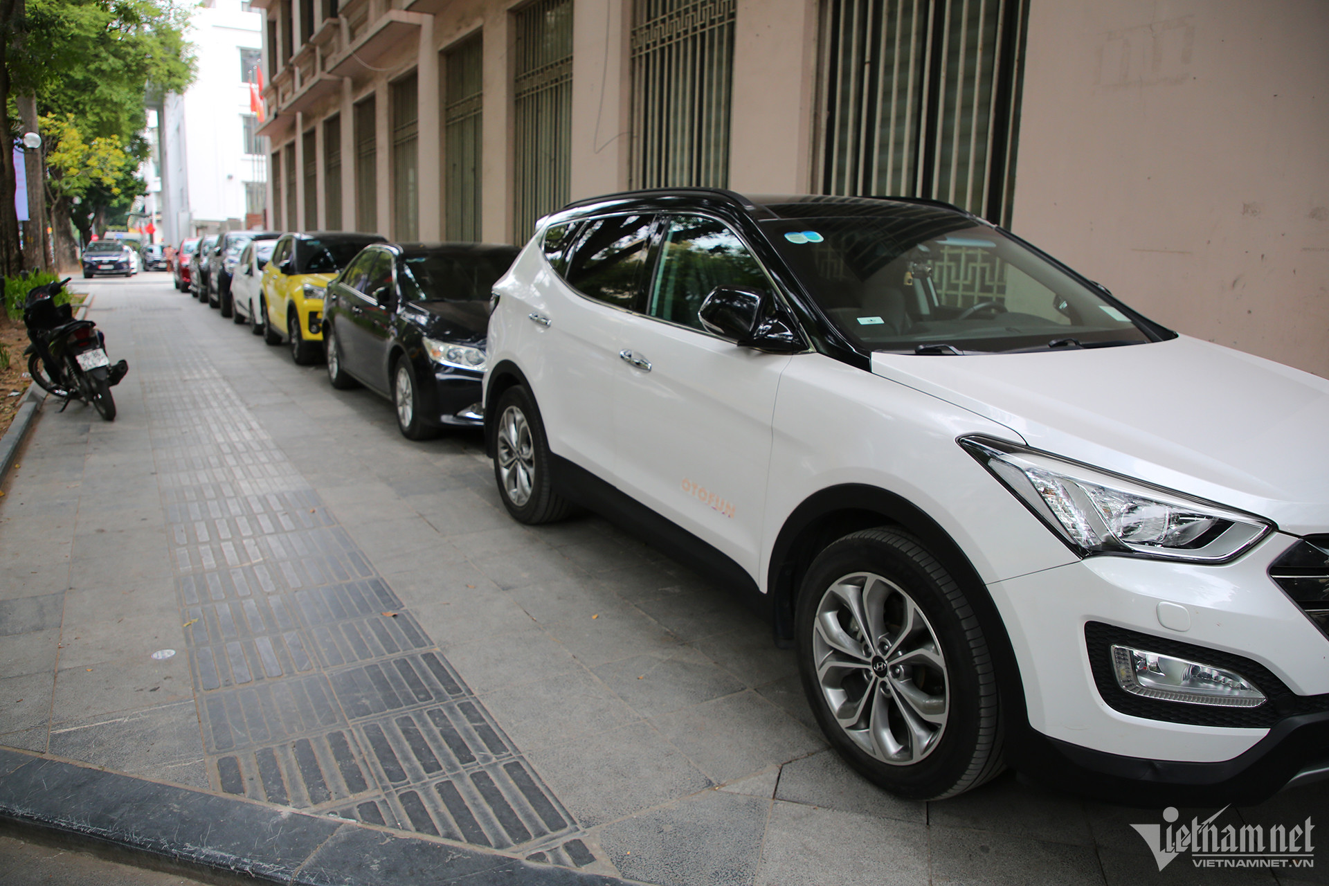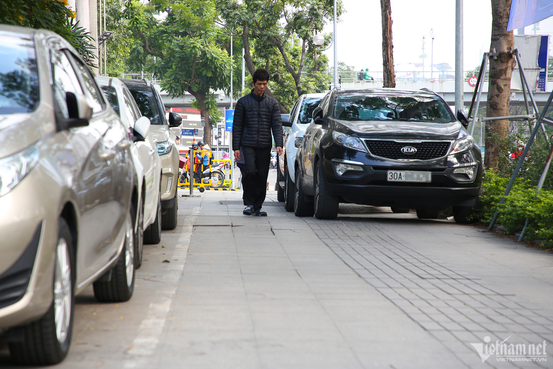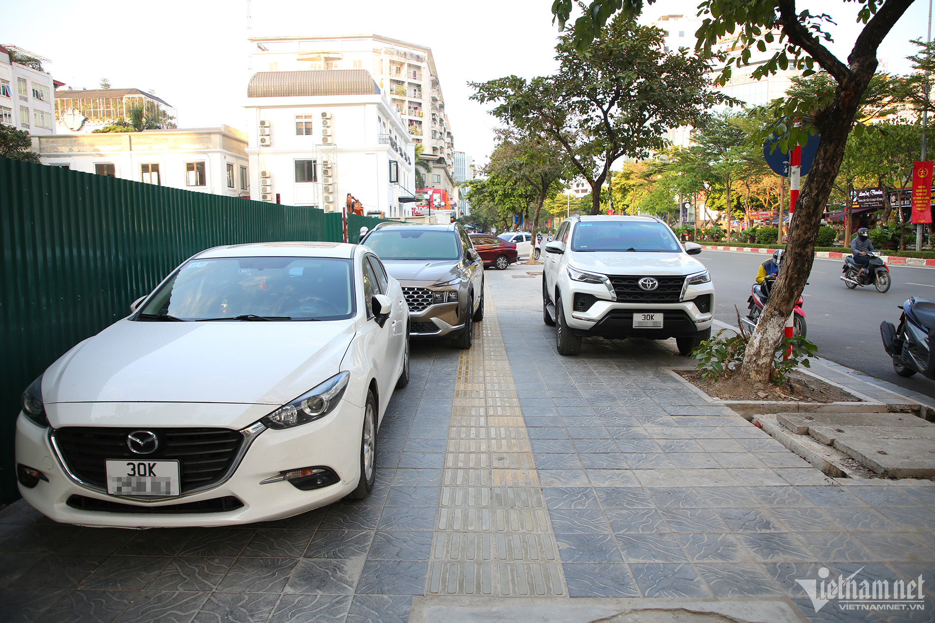 Thậm chí, tại phố Trần Thái Tông (quận Cầu Giấy), vỉa hè đang được thay đá lát dang dở đã có 10 ô tô đỗ ngổn ngang ở khu vực trước cửa số nhà 90 phố Trần Thái Tông.