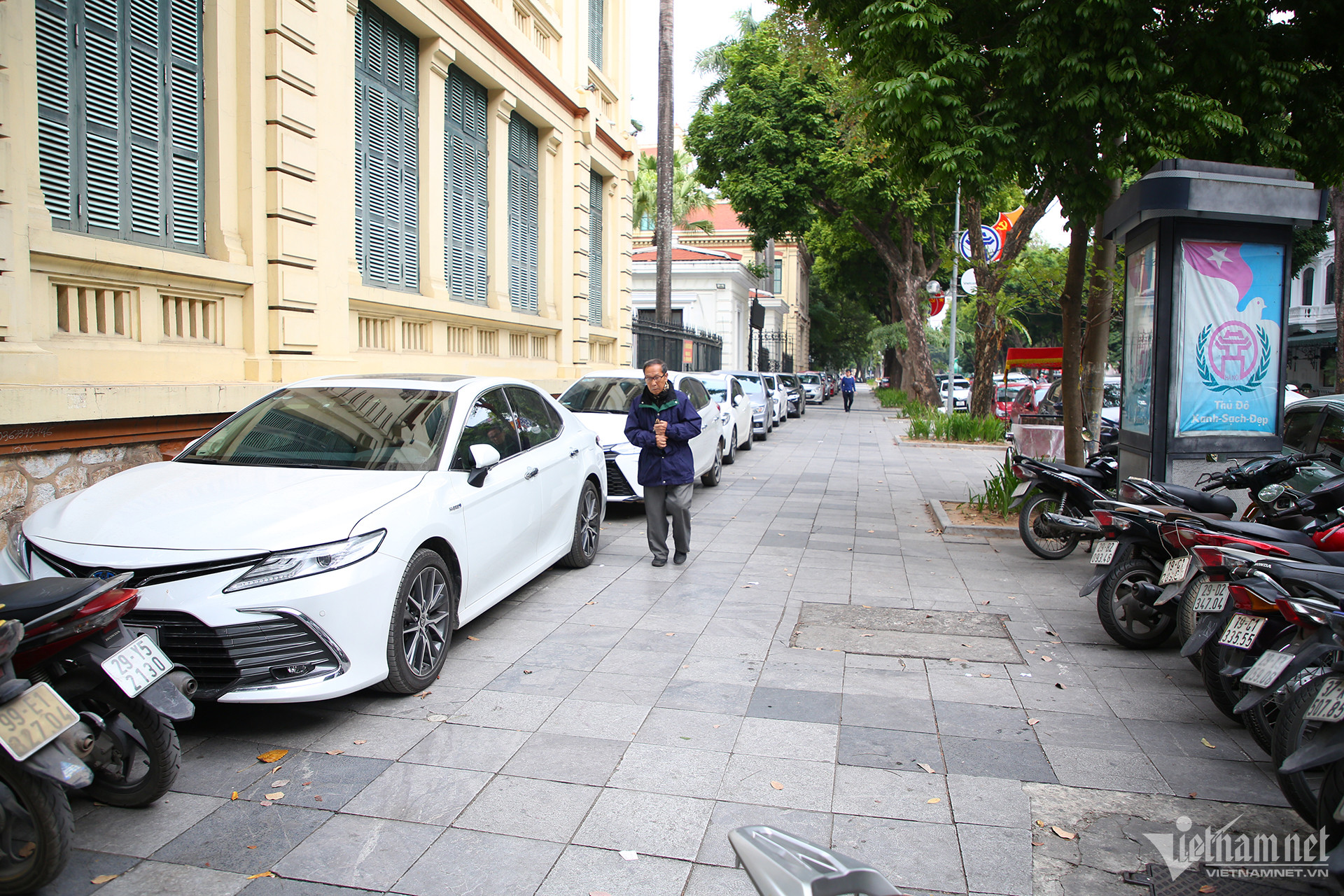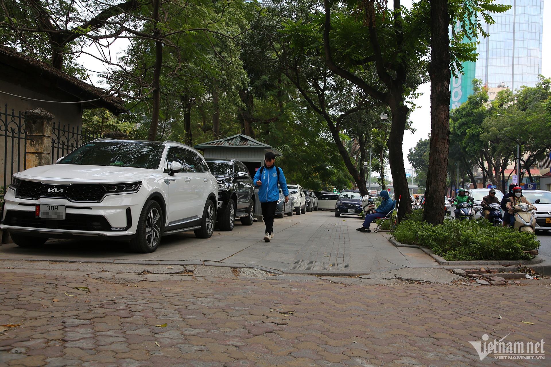 "Có lẽ là cơ quan chức năng đã cấp phép cho họ đỗ xe ở trên vỉa hè, tuy nhiên, việc đỗ ô tô nặng vài trăm kg đến cả tấn trên hè sẽ ảnh hưởng đến độ bền của đá lát", ông Nguyễn Quyền (70 tuổi, trú tại Hàng Trống, Hoàn Kiếm) cho biết.