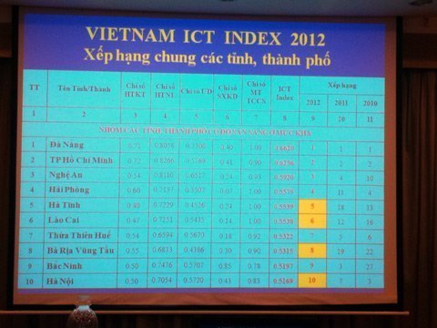 Đây là năm thứ hai liên tiếp Hà Nội bị tụt hạng về VietNam ICT Index. Năm 2010, Hà Nội đứng thứ ba toàn quốc, chỉ sau Đà Nẵng và TP. HCM. Năm 2011, Hà Nội giảm nhanh xuống vị trí số 7 và năm nay “khóa sổ” top 10. Trong khi đó, Đà Nẵng và TP.HCM vẫn duy trì thứ hạng cũ của mình.