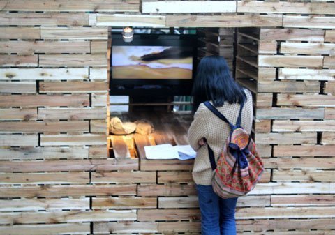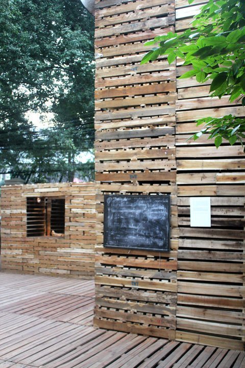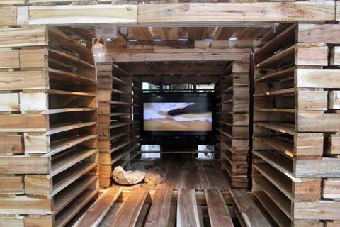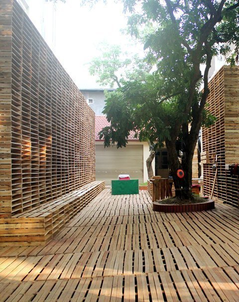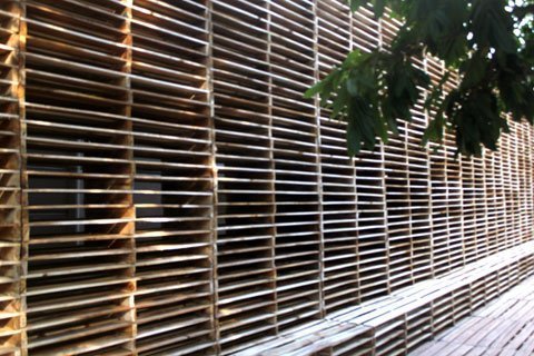 nghìn tấm pallet gỗ để che phủ toàn bộ khuôn viên trung tâm văn hóa này,